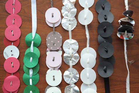 3. Pasa el hilo o la cinta a través de los agujeros de cada circulo.