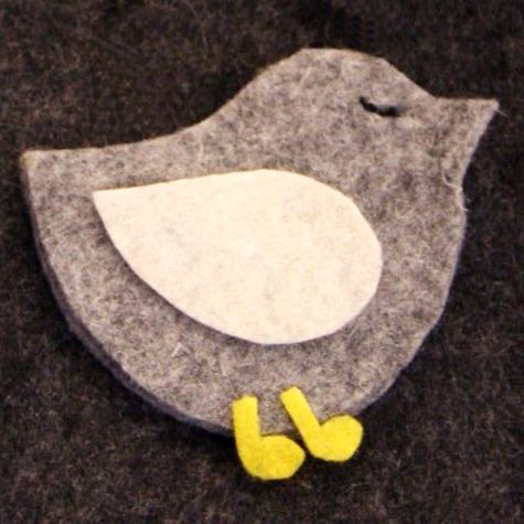 5. Hazle una puntada en la parte trasera del pájaro y coselo a la bolsa. Usa el pájaro como broche para cerrar la bolsa.