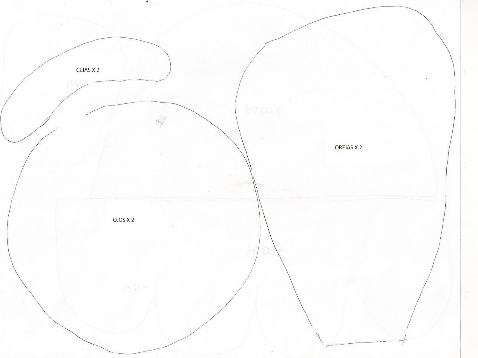9. En la imagen puedes ver lineas negras marcadas, por esas lineas es por donde debes coser las partes juntas. Si es necesario pruebate el disfraz y verifica que coseras las partes indicadas. Cose las piezas de las orejas de la plantilla y rellenalas.