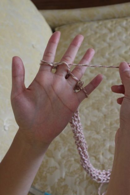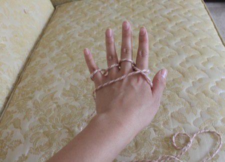 9. Una vez que has puesto bucles a todos los dedos, saca de los dedos y tira con fuerza en el extremo.