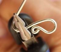 3. Sujeta el alambre con la parte inferior de la pinza con el bucle hacia arriba en el lado correcto.