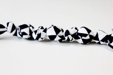 10. Manten la adición de perlas y nudos hasta llegar a 27,5 cm desde el otro borde. Asegúrate de que termines con un nudo, gira y cose el otro extremo.