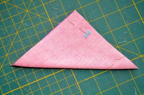 18. Tira de manera que los dos bordes del triangulo se junten en el centro. Has un nudo de manera que el hilo no se corra.