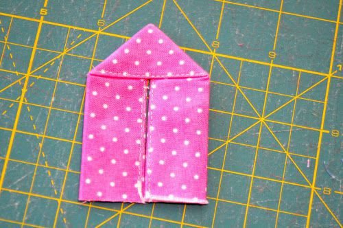 16. En el lado mas largo del triangulo has un corte lo mas cercano al borde que te sea posible. Da vuelta el triangulo y presiona.