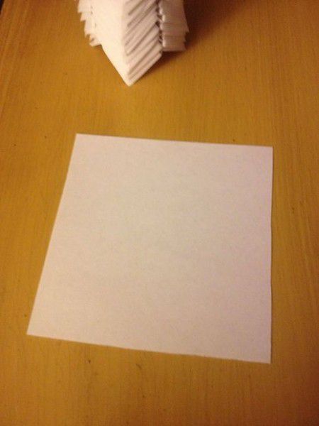 2. Busca una hoja de papel y cortala formando un cuadrado. Realízalo de la forma que te sea mas sencilla, luego dobla y corta el cuadrado en cuatro cuadrados iguales.