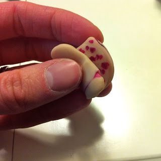3. Molde la arcilla de manera que se mesclen lo colores, aplanala y realiza puntos nuevamente.
