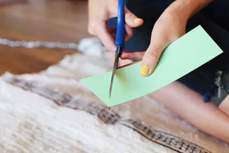 1. Para la guirnalda de triangulos, con tijeras, corta la cartulina en dos partes (dos tiras anchas).