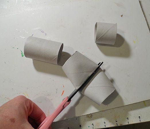 1.Comienza cortando los tubos de carton a la mitad o de varios tamaños.