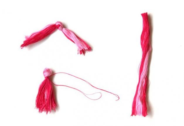 4.Forma pequeñas borlas de colores con lana del largo que gustes y atalas a la parte superior de la otomana en forma decorativa.